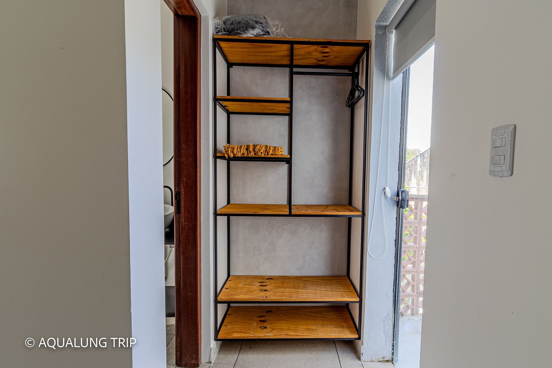 - Cama de casal e um Futon, perfeitas para até três hóspedes, com armários para guardar seus pertences.