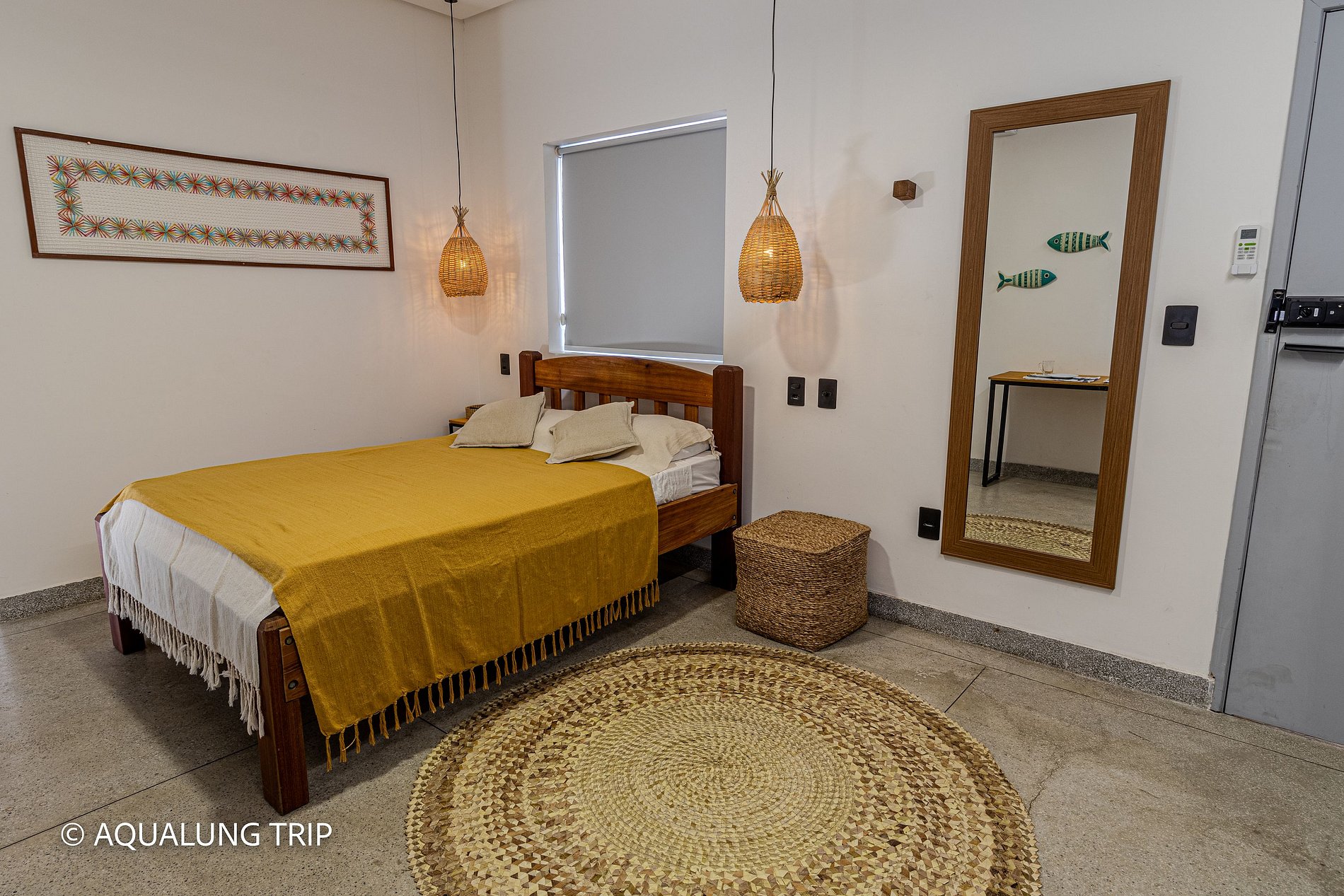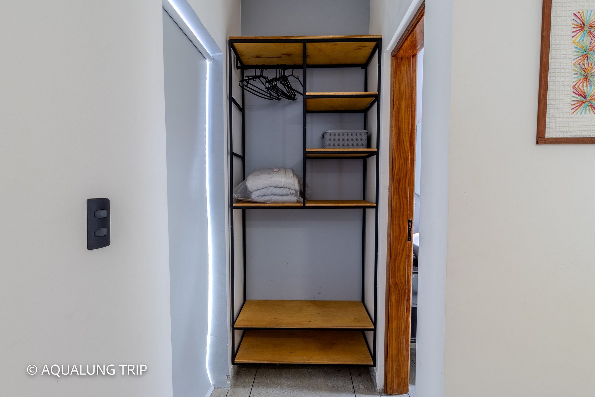 - Cama de casal e um Futon, perfeitas para até três hóspedes, com armários para guardar seus pertences.