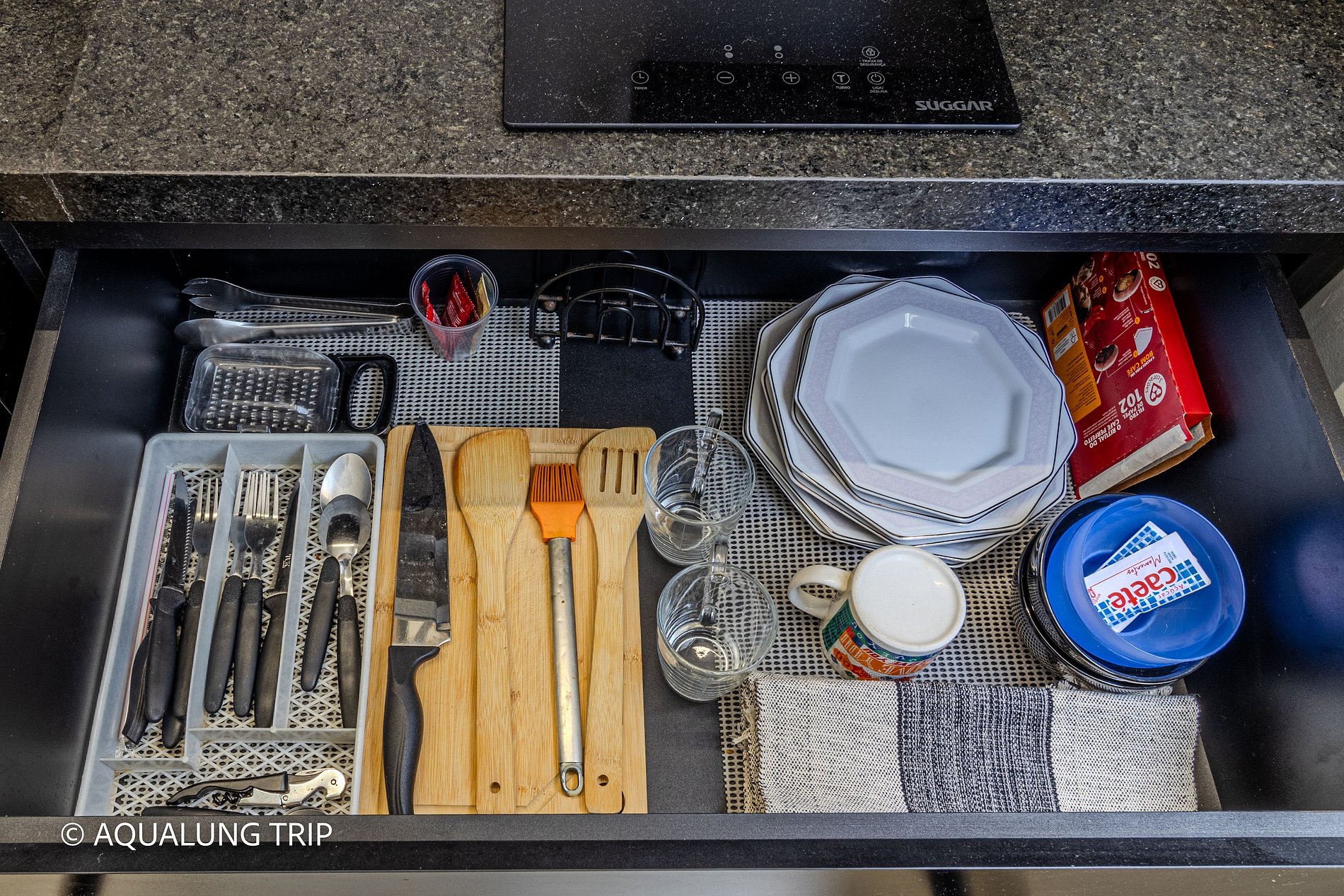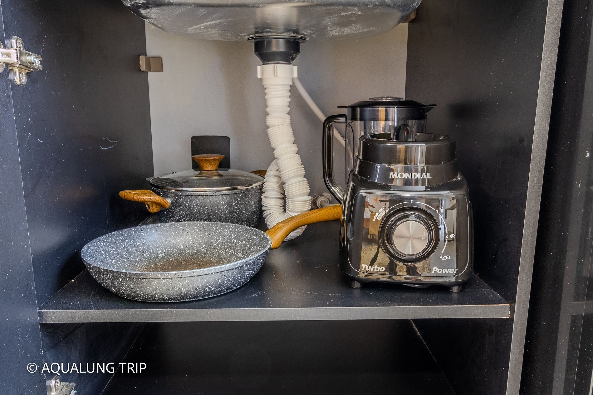 - Cozinha Planejada: Equipamentos modernos, incluindo fogão de indução, geladeira, microondas, além de panelas, louças e talheres para preparar suas refeições.
